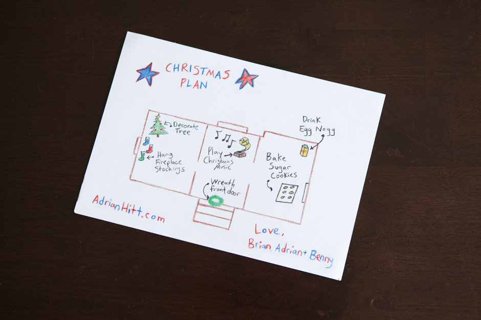 For our own card, we barely got them out this year with everything going on with the move, but after establishing the annual printing of the “Happy Holidays Post” last year, we couldn’t skip it! If you haven’t already seen it, this was the front of this year’s edition: